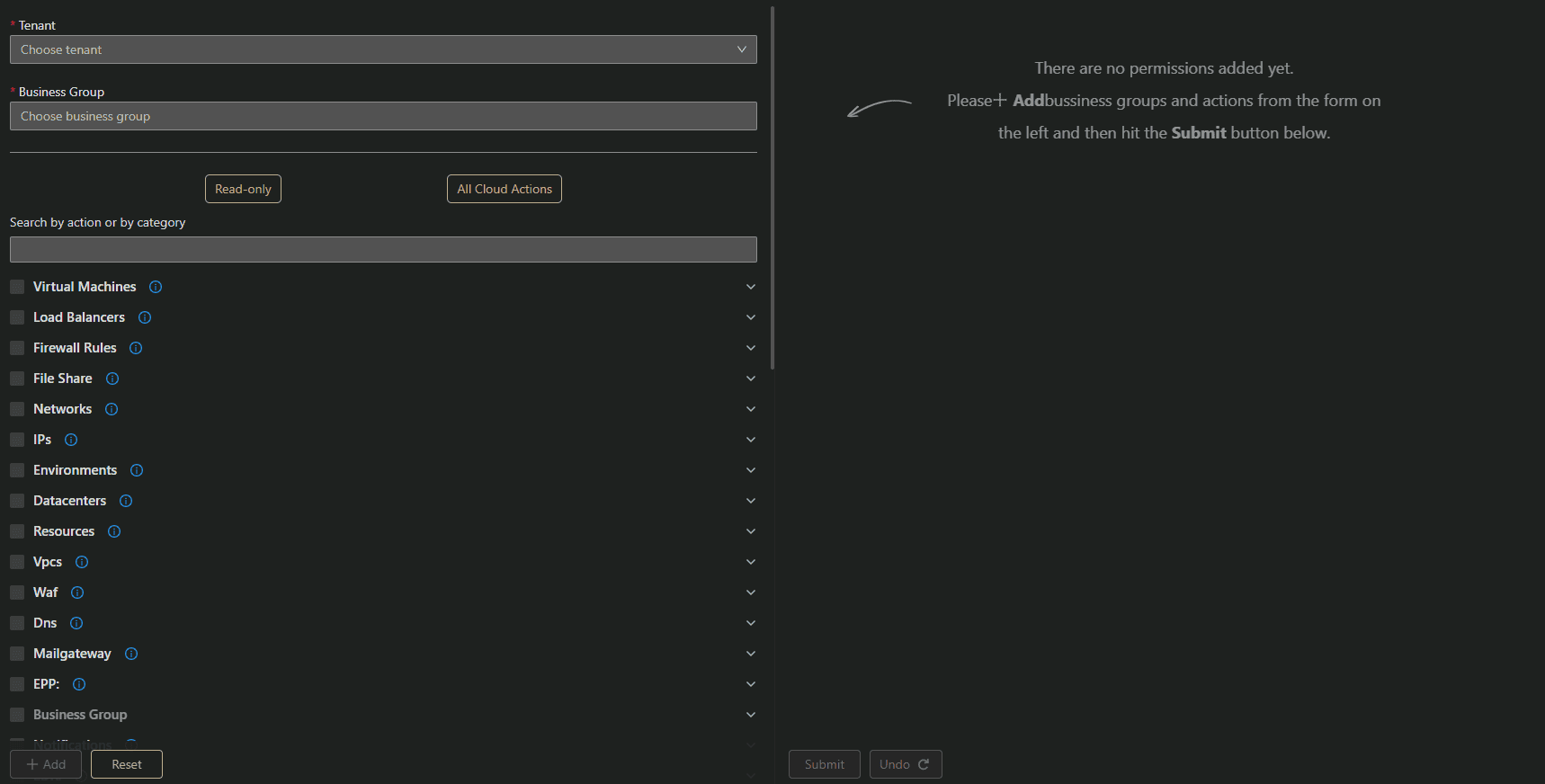 NOTE: In order to be able to assign permissions to a profile, you need to have the following permissions assigned to your tenant & BG: