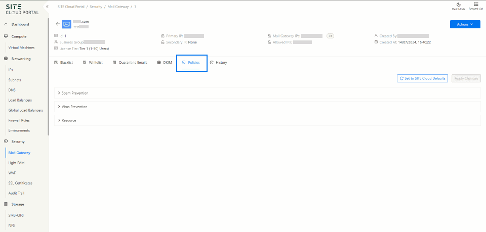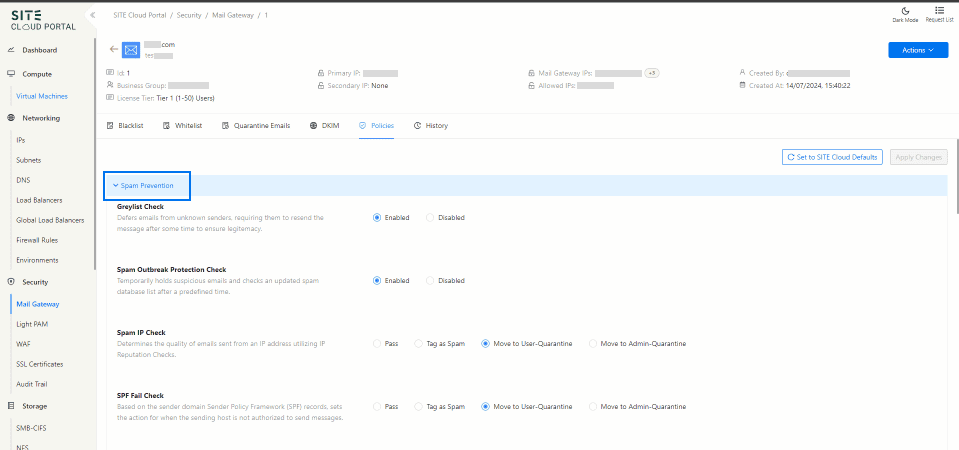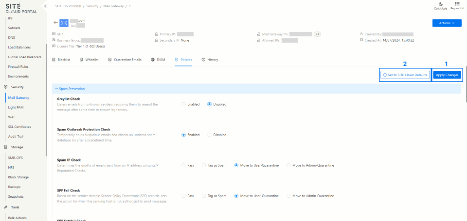 SITE Cloud Mail Gateway Policy Builder enables administrators to manage rules that control the flow of email traffic within an organization. This ensures security, compliance, and efficient email management.
