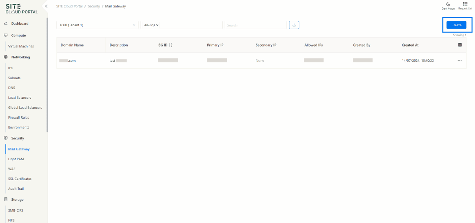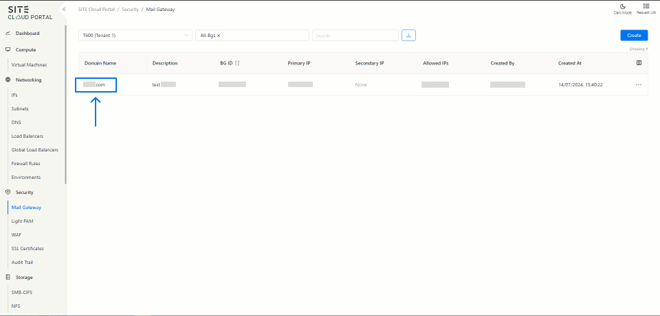 Access Through Security Section: On the side menu, through security section select “Mail Gateway”.