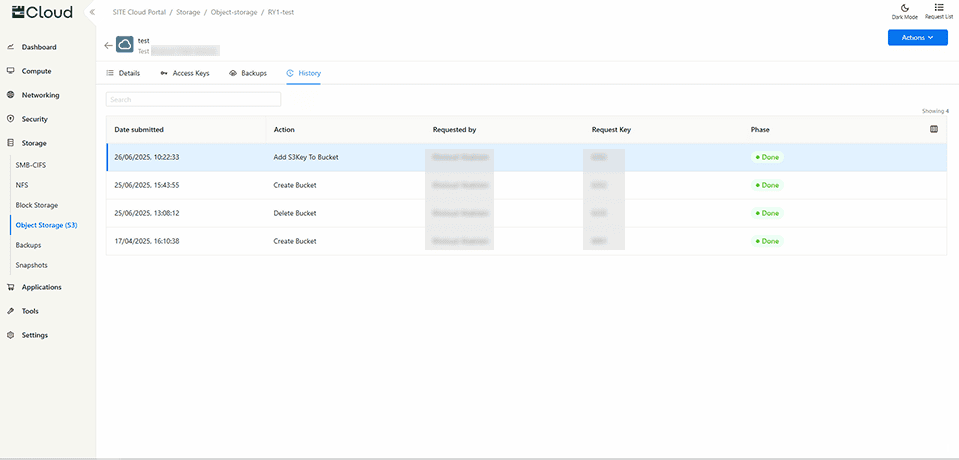 3.4 History Tab displays a complete log of all changes and actions performed on your bucket, providing a detailed record for tracking modifications and updates.