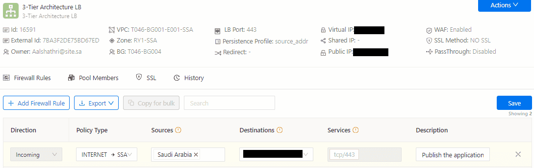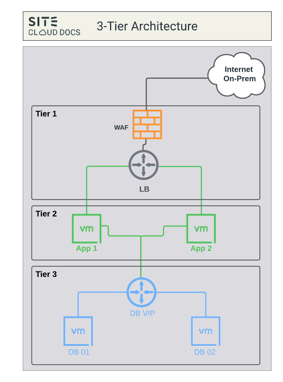 This manual provides guidance on designing a 3-tier architecture application with a Load Balancer (LB), a Web Application Firewall (WAF), an SSL Termination Zone, an Application VMs zone, and a DB VMs zone. A 3-tier architecture is a widely adopted approach for building scalable and secure web applications. This manual will help you understand the concepts and steps required to design and implement such an architecture in SITE Cloud.