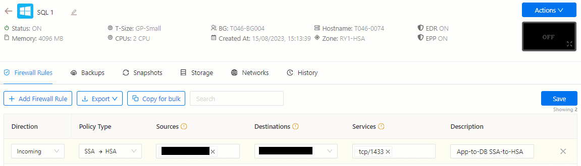 App VMs will be placed on SSA zone and DB VMs will be placed on HSA zone.