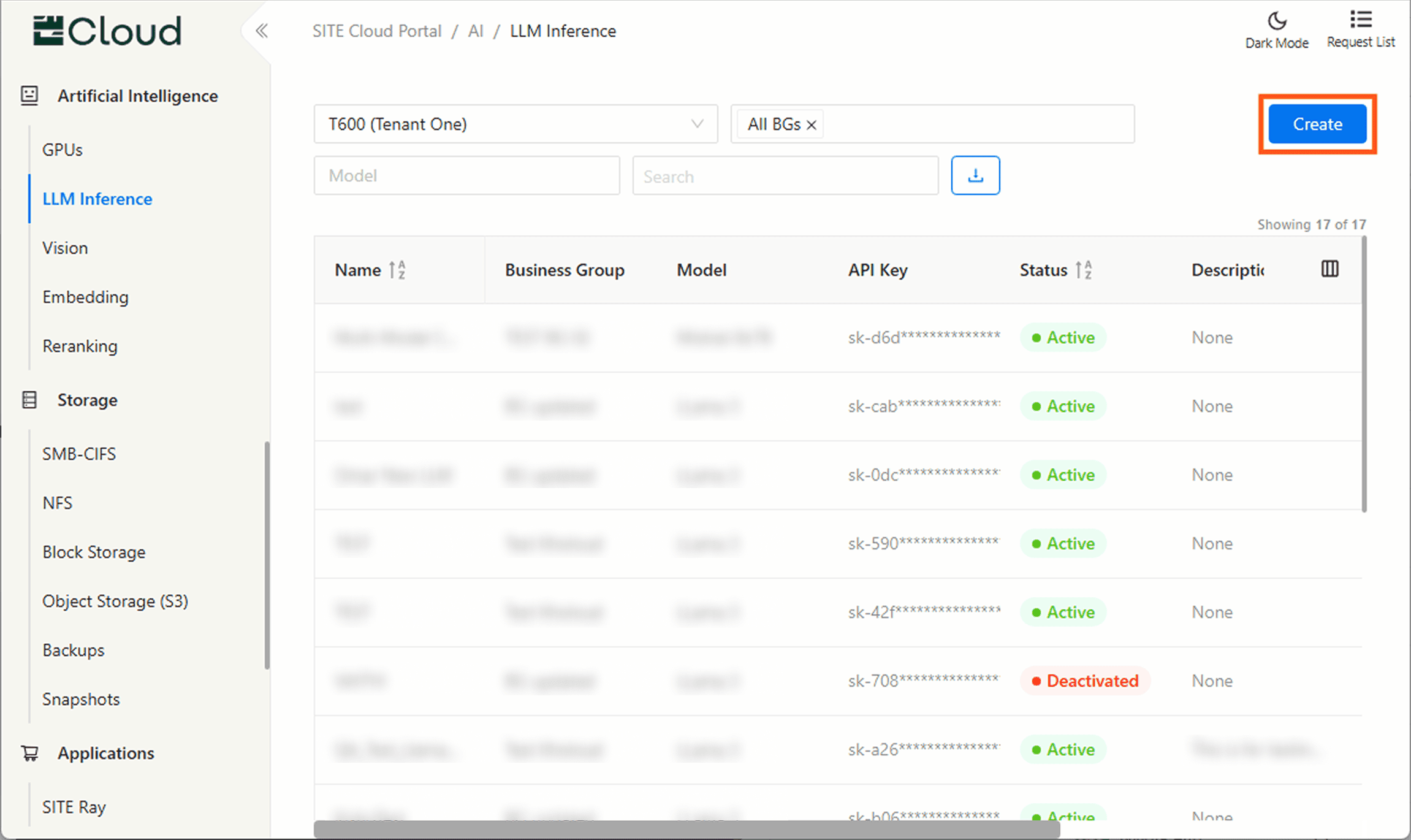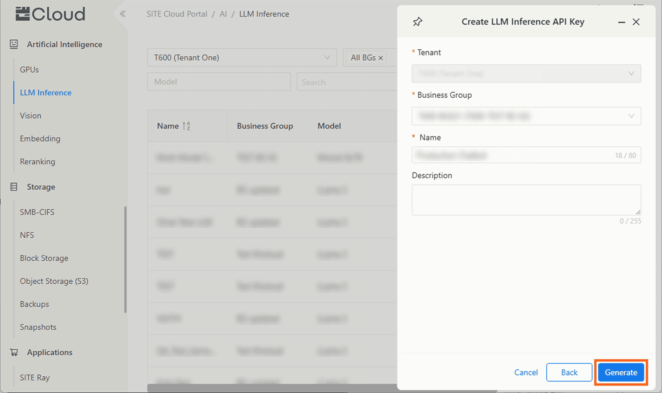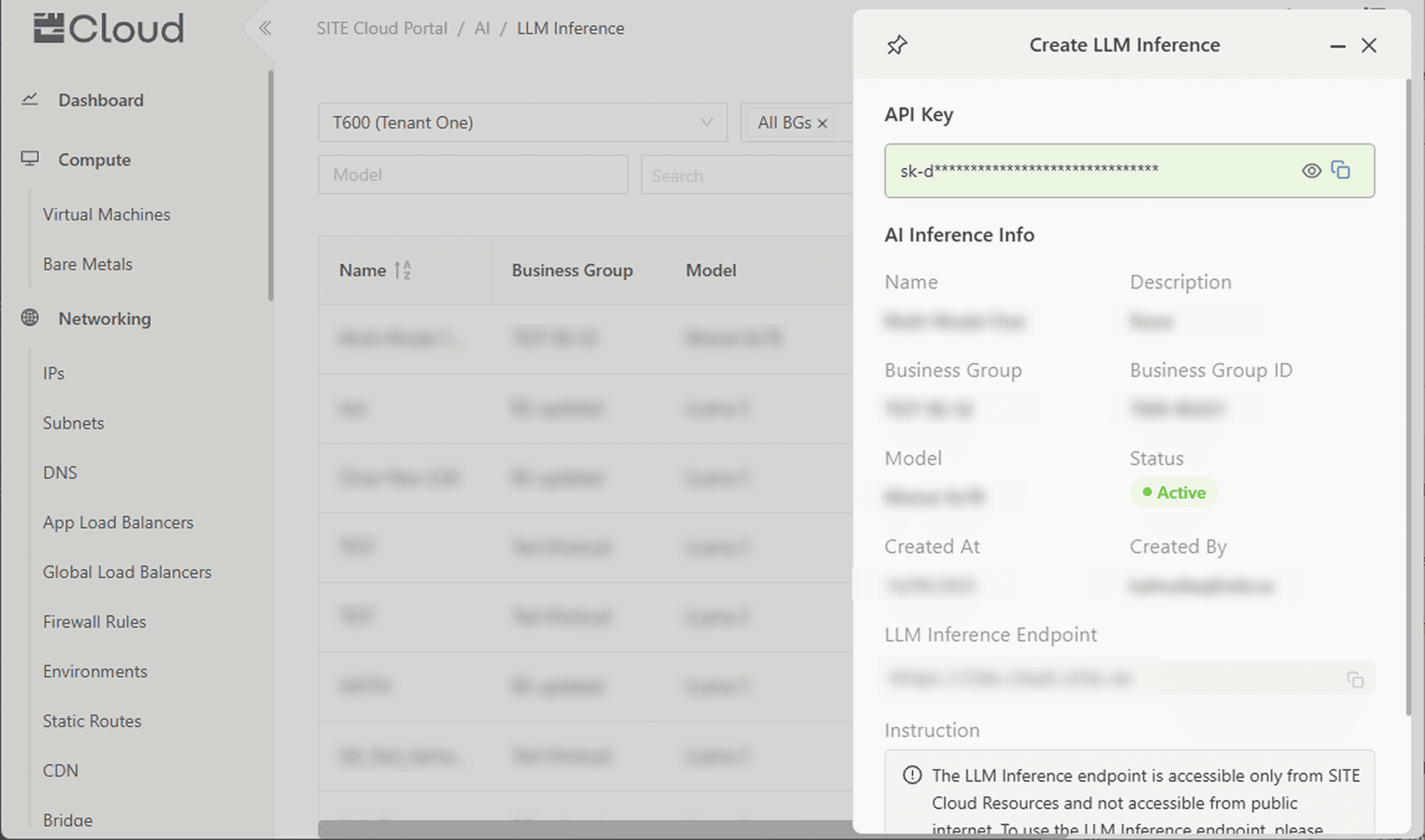 In the Cloud Portal, navigate to the product you want to use (here we’ve selected LLM Inference) to view and