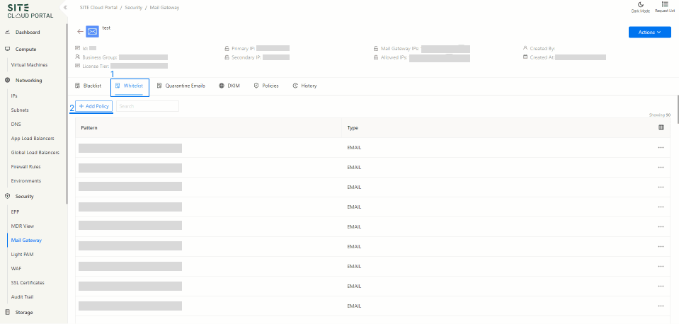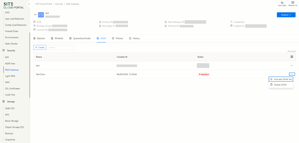 Access Through Security Section: On the side menu, through security section select “Mail Gateway”.