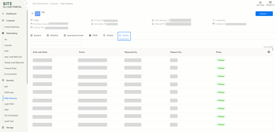 Changes History: Ability to track and view the history of any changes on the mail gateway via SITE portal.