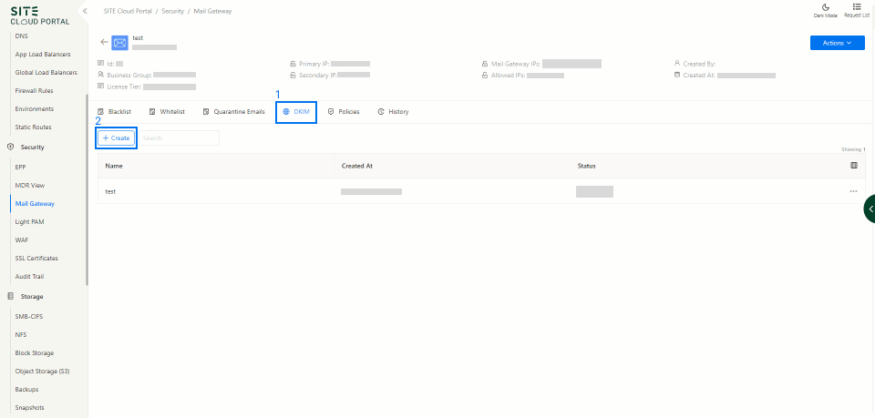 Click on "DKIM"[1] tab and then "Create"
