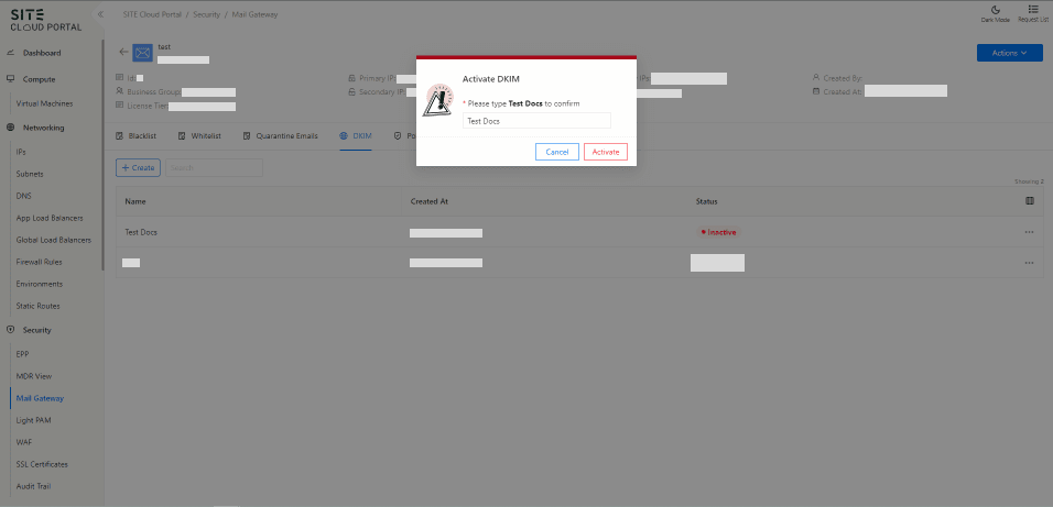 From the three dots click on “Activate DKIM file”, and confirm that you generated key selector