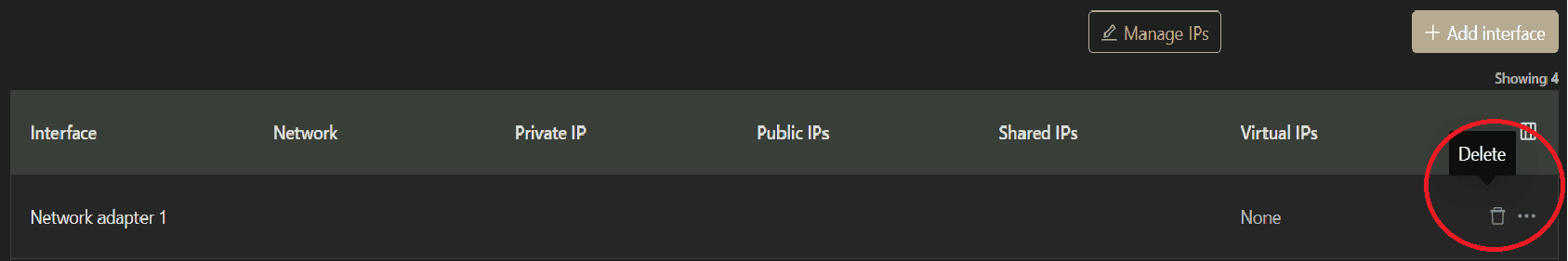 3-highlight the interface you would like to delete, and click on the delete icon.