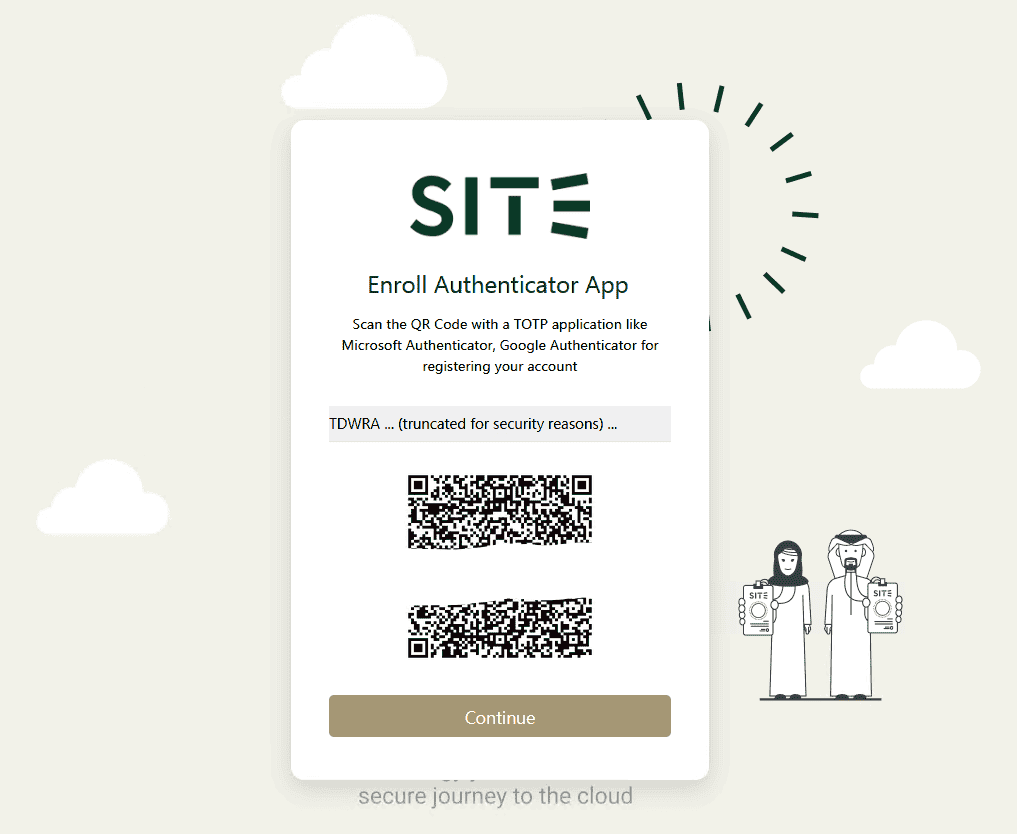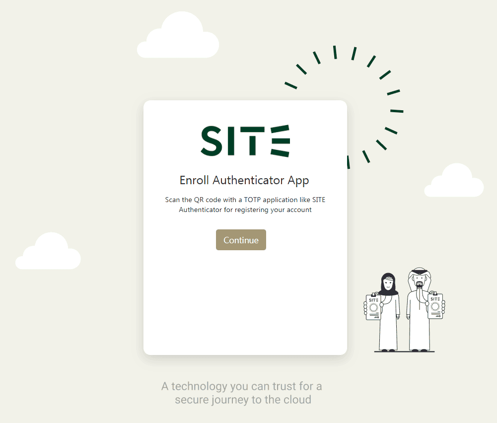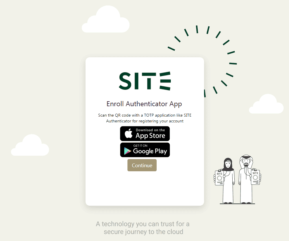 4- On “Enroll Authenticator App”, Download SITE Authenticator on your phone, then press Continue