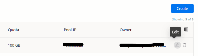 After creating a share, you can click on the “Edit” icon for instructions on mounting the NFS and the required firewall rules.