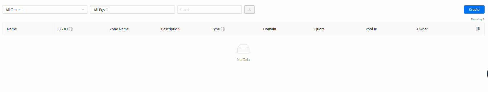 3. Click on the FS Zone and click on “Create” button to create a new share.