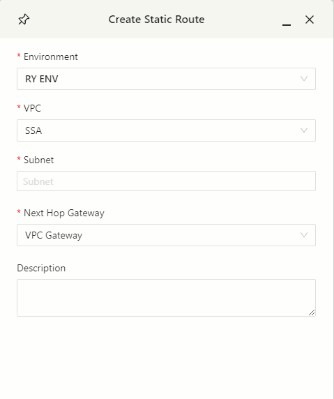 • Subnet: Input the target Subnet. This subnet needs to be part of an existing Cloud Subnet specified in the Subnet Page.