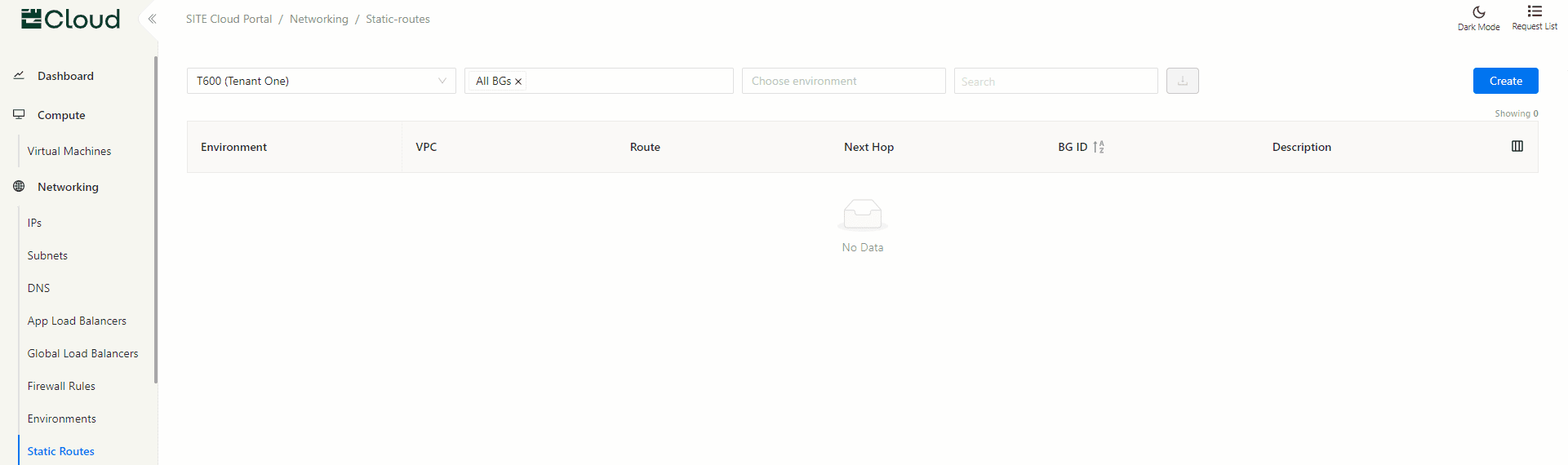 • click on Static Route item that is inside Networking category from the side menu navigation.