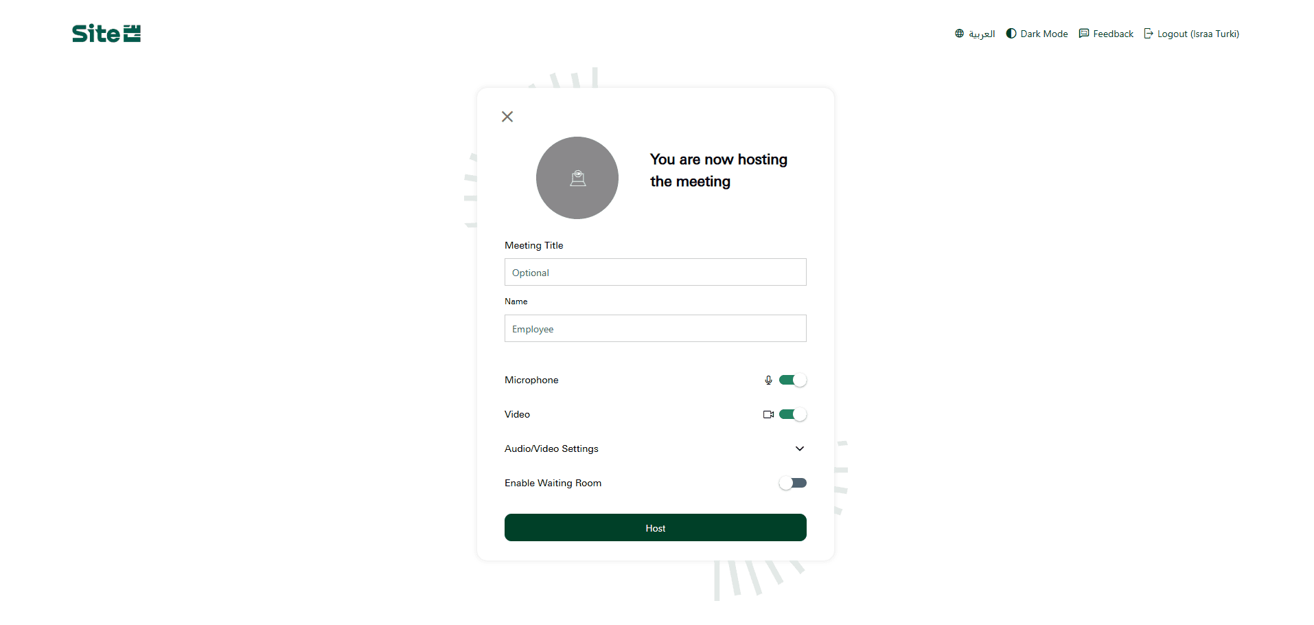 Add meeting details, then Click on "Host" to start the meeting.
