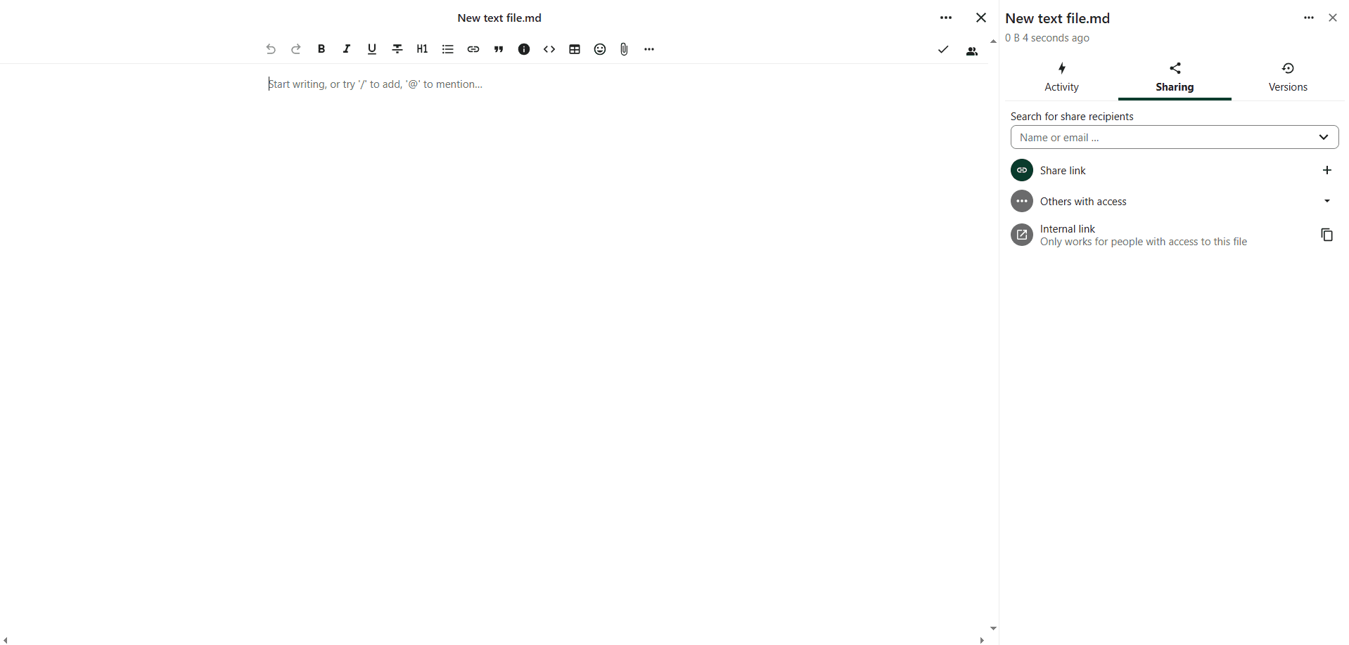 Alternatively however, user A could provide user B with an internal link for that file and share it with them, user B will have to login to the system first, after that it will send them directly to that file without the need to search for it. User A will not have to set any passwords on the link, all that’s required is the one receiving the link is already one of the users who received this share earlier, if this link is shared with a user who didn’t receive any share activity earlier from user A, then they’ll not be able to use that link whatsoever.