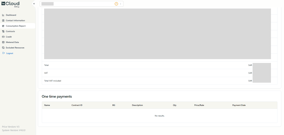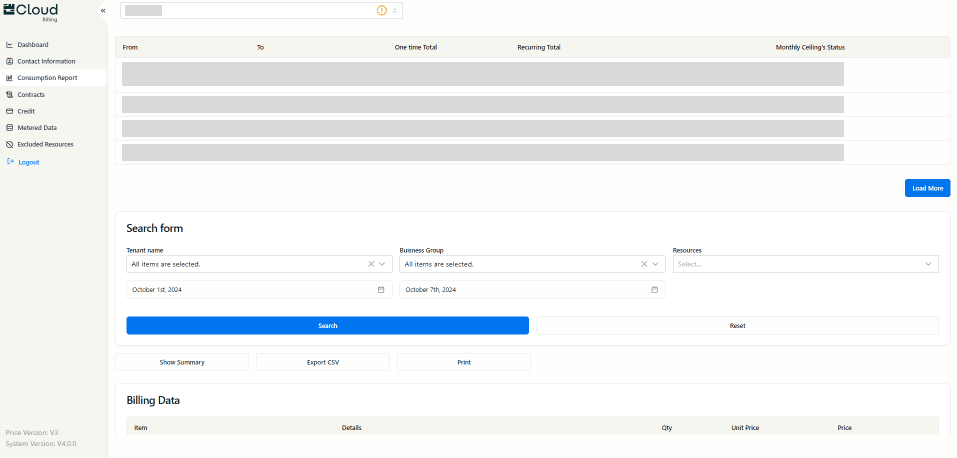 This feature allows to view and generate detailed reports on consumption data. This report helps track usage over time, view billing information, and analyze specific consumption periods.